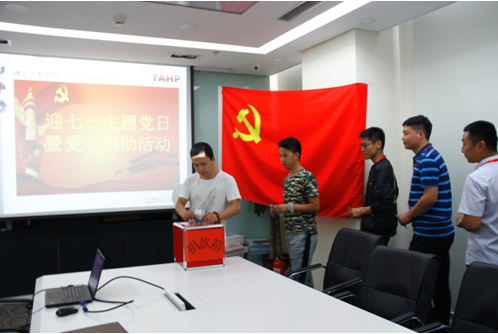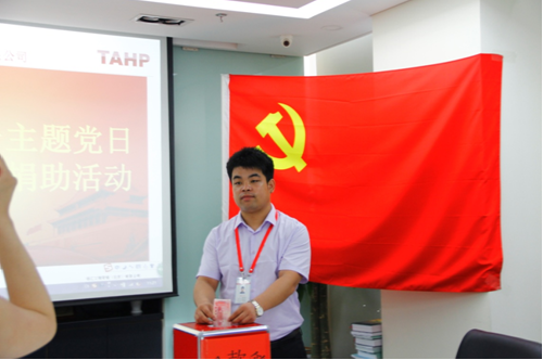 此次主題黨日活動有重溫入黨誓詞、現場愛心捐助兩項内容。參加活動的全體黨員又在黨旗下,重溫了入黨誓詞,铿锵有力的誓詞,強烈震撼着在場的每一位黨員的心靈。随後,全體黨員帶頭進行了1對1捐資助學愛心捐款活動,各部門員工也踴躍參加,場面非常有序和諧。下一步公司不僅自身要捐款,而且還要發動分支機構進行捐款,力争8月份完成捐款活動,爲更多的貧困學生家庭提供義務教育學費,爲回饋社會做出我們企業應有的貢獻。